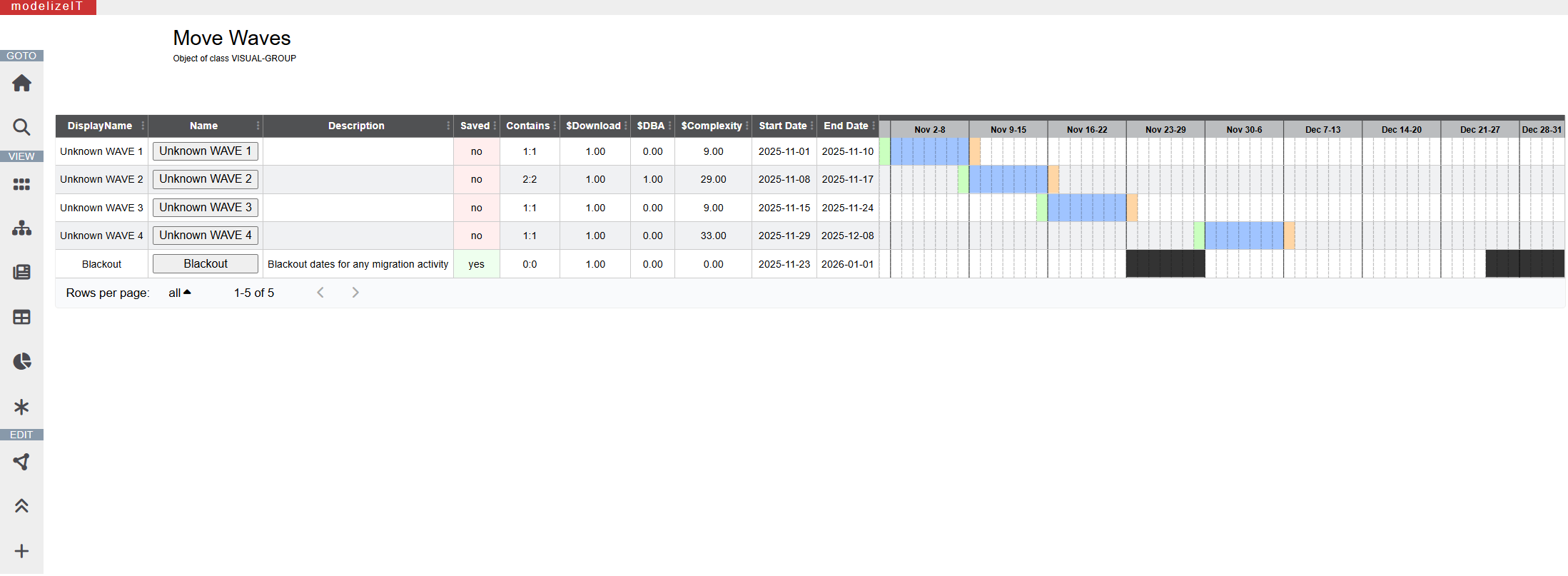 modelizeIT wave planning rules can rely on both: business context and deep technical data.